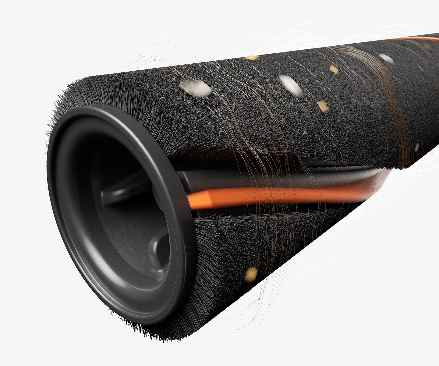 Když je robotické rameno přitisknuto ke zdi či překážkám, automaticky se nastaví do optimální pozice a přitlačí měkký pomocný váleček přímo k podlaze či rohům.