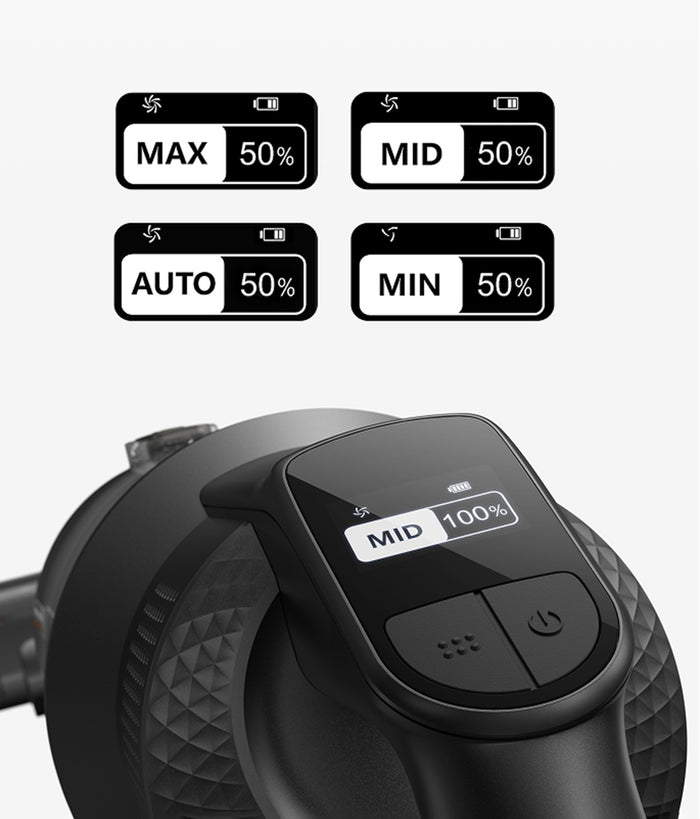 Čištění až po dobu 90 minut*. Displej OLED ukazuje úroveň nabití baterie a režimy. Přepínejte mezi režimy Min/Mid/Max jedním tlačítkem, nebo jej podržte po dobu 2 sekund pro automatický režim, který přizpůsobí sání podle úrovně nečistot a zajistí snadné ovládání.
