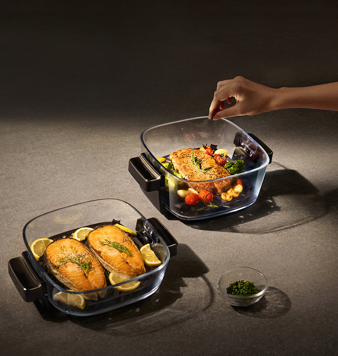 Skleněná horkovzdušná fritéza 8 v 1 se dvěma výměnnými nádobami