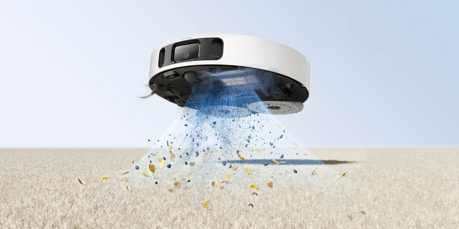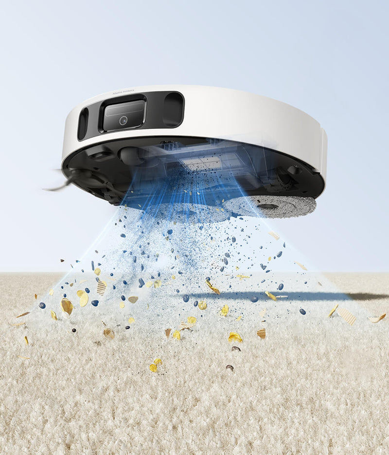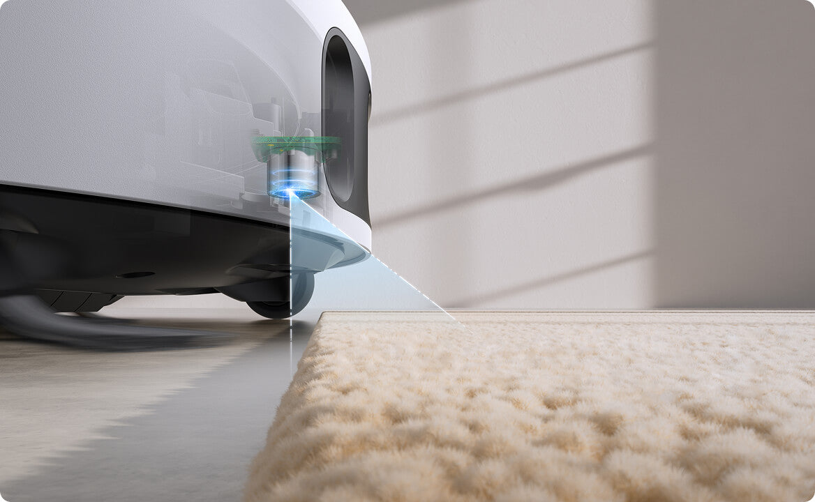 Chytré čištění koberců (zvednutí mopu o 10,5 mm + ultrazvuková detekce koberců + zvýšení sacího výkonu)