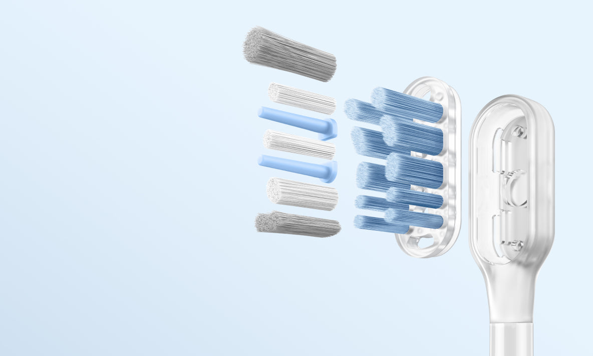 FDA schválená*, citlivá hlavice kartáčku jemně čistí podél dásňové linie, aniž by jí ubližovala. Tyto extra měkké štětiny 0,01mm* poskytují bezpečnou a efektivní péči o citlivé dásně a hladce odstraňují plak z těsných prostor mezi zuby a dásněmi.