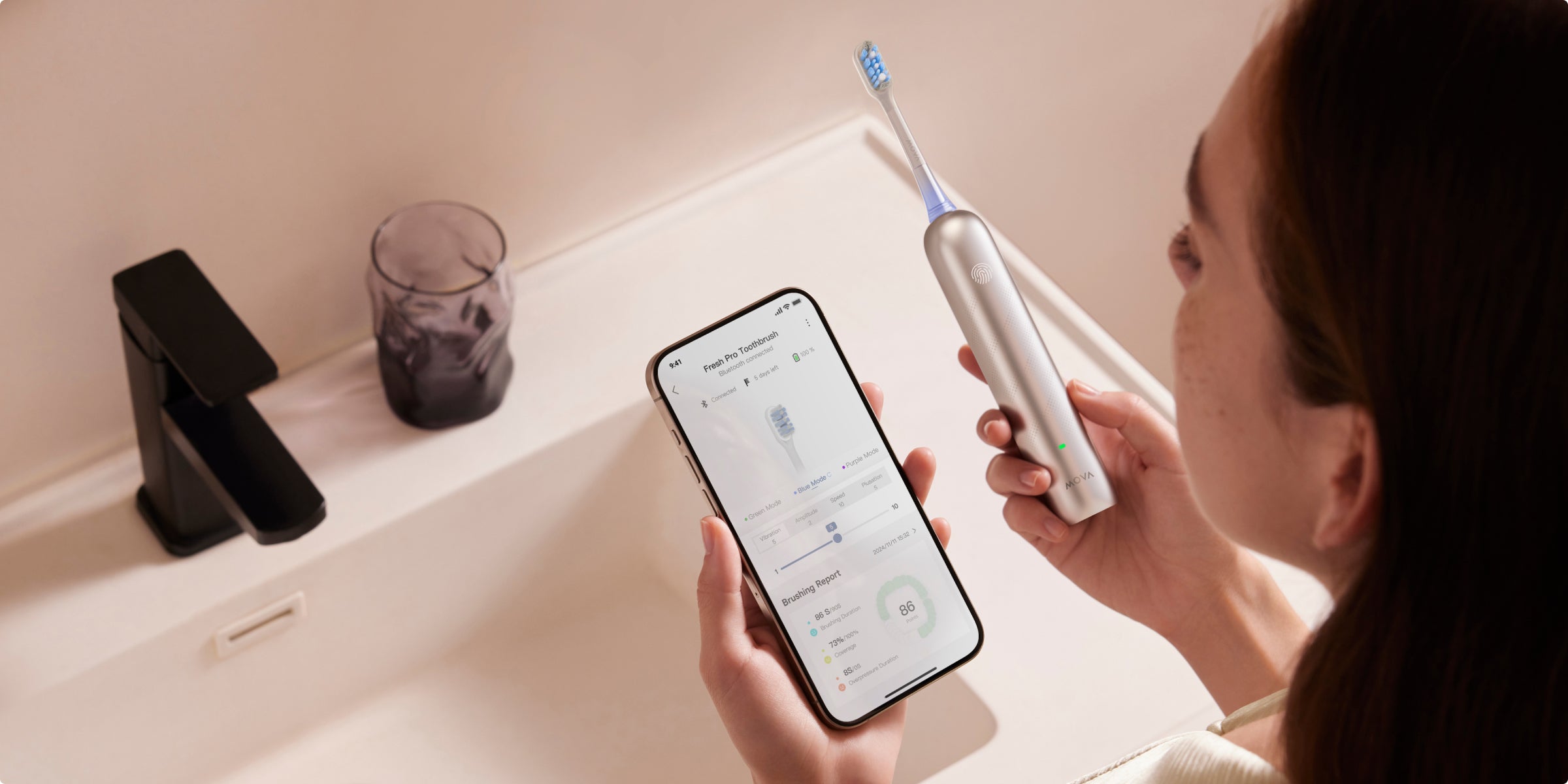 Vylepšená ústní hygiena s aplikací MOVAhome (pouze Fresh Pro)