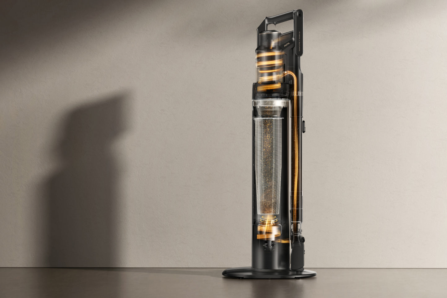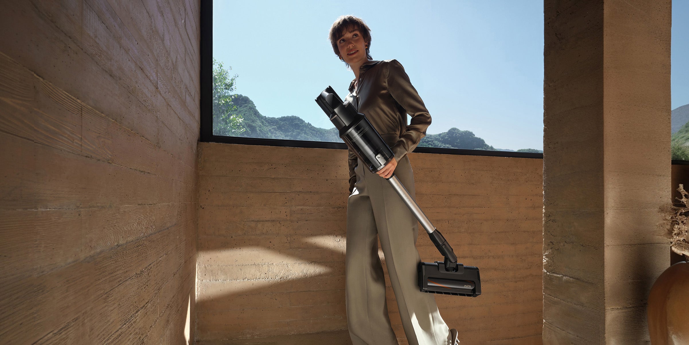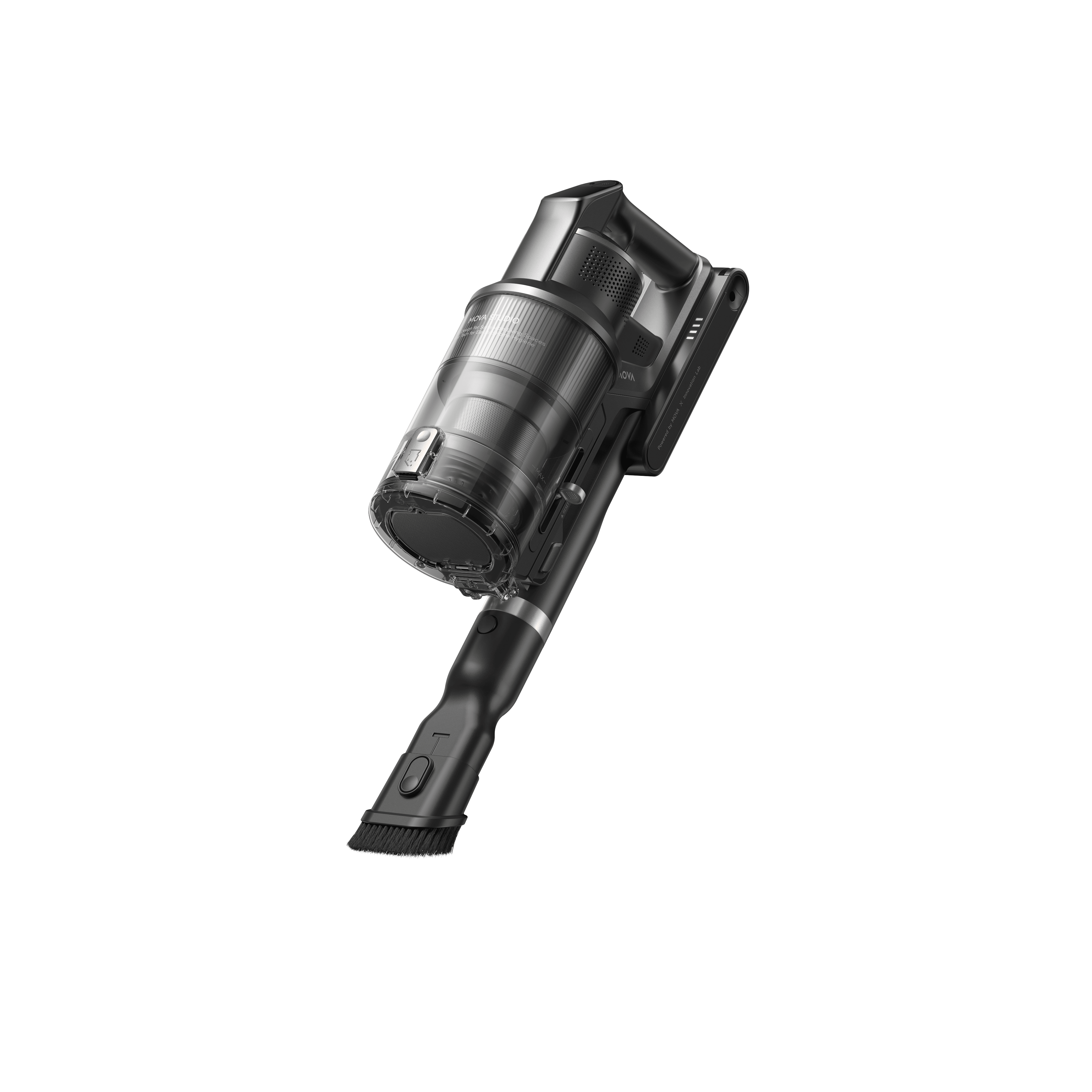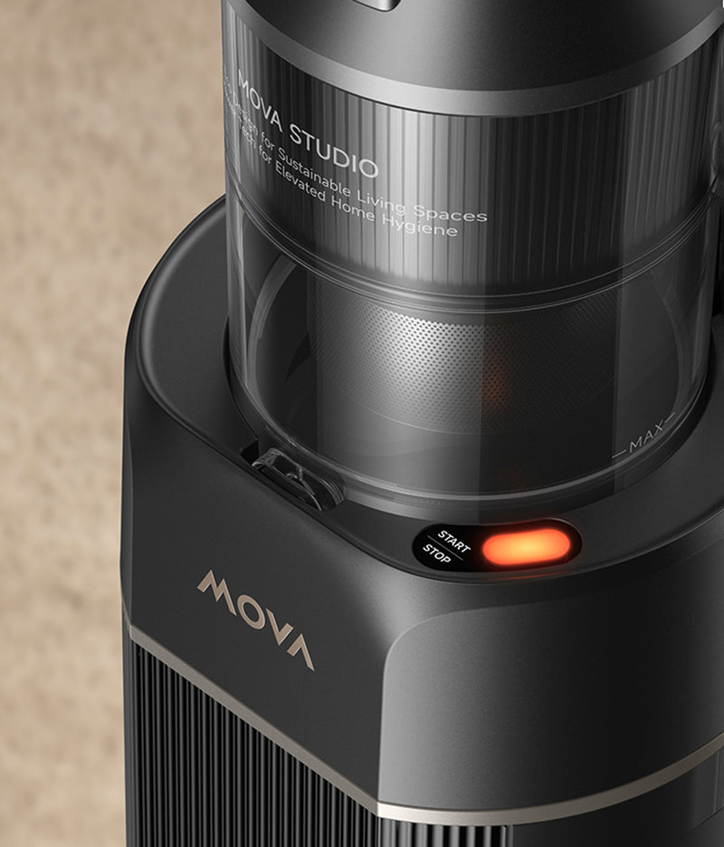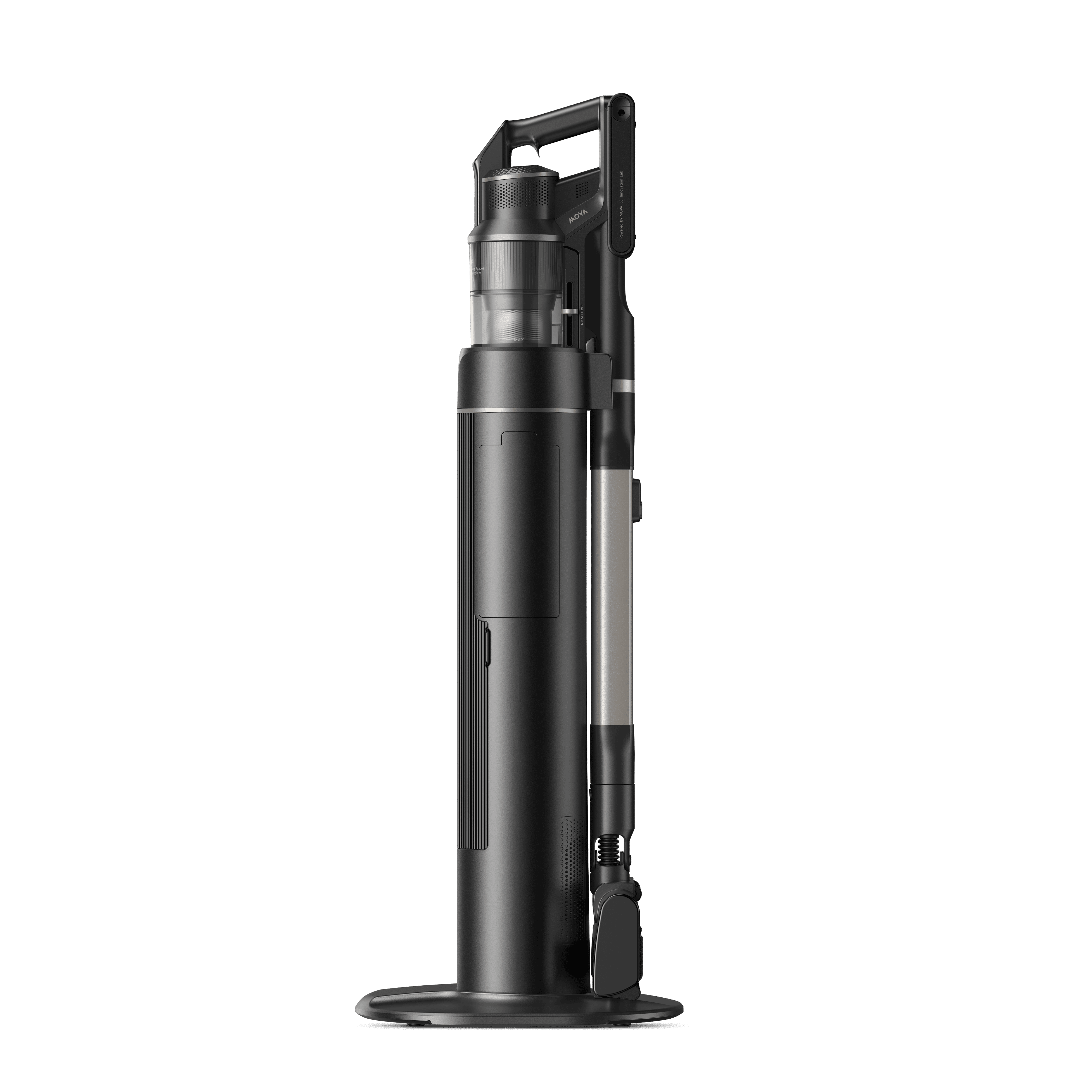 První akumulátorový tyčový vysavač značky MOVA s robotickým ramenem a základnou