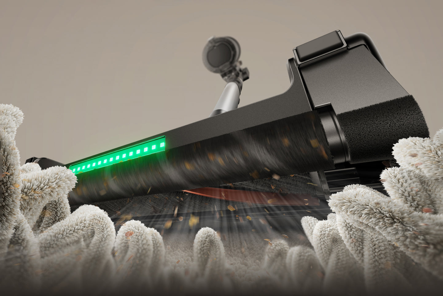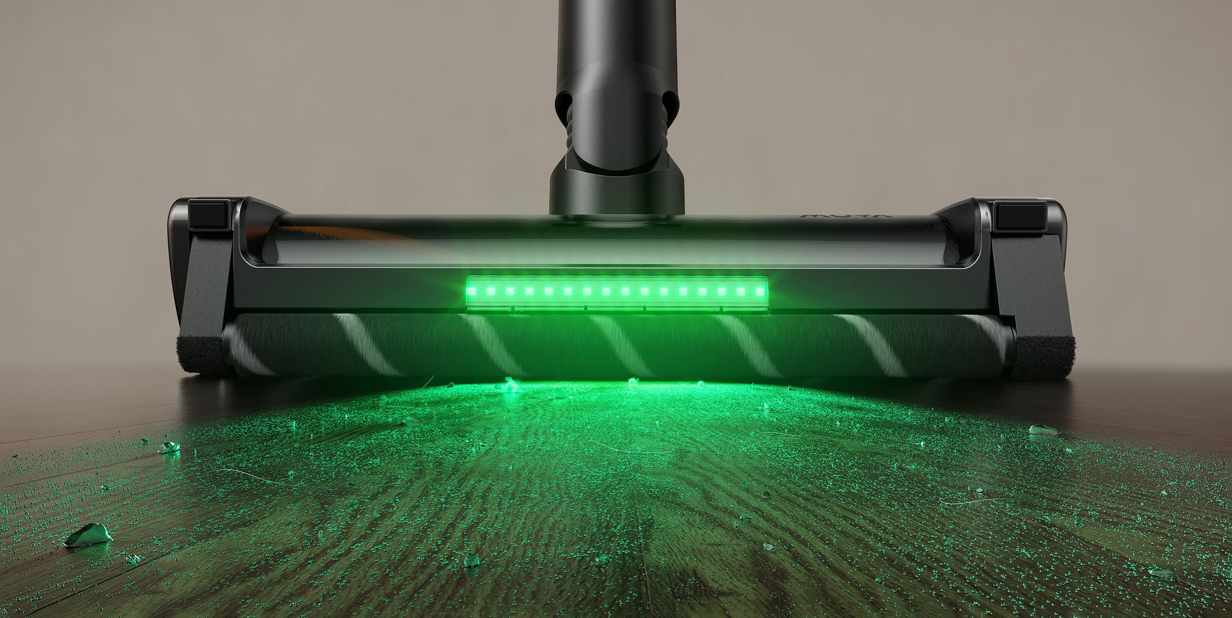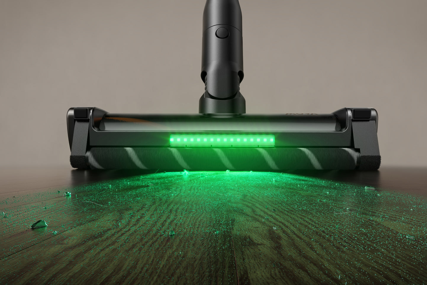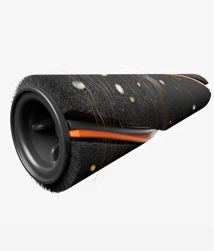 Když je robotické rameno přitisknuto ke zdi či překážkám, automaticky se nastaví do optimální pozice a přitlačí měkký pomocný váleček přímo k podlaze či rohům.