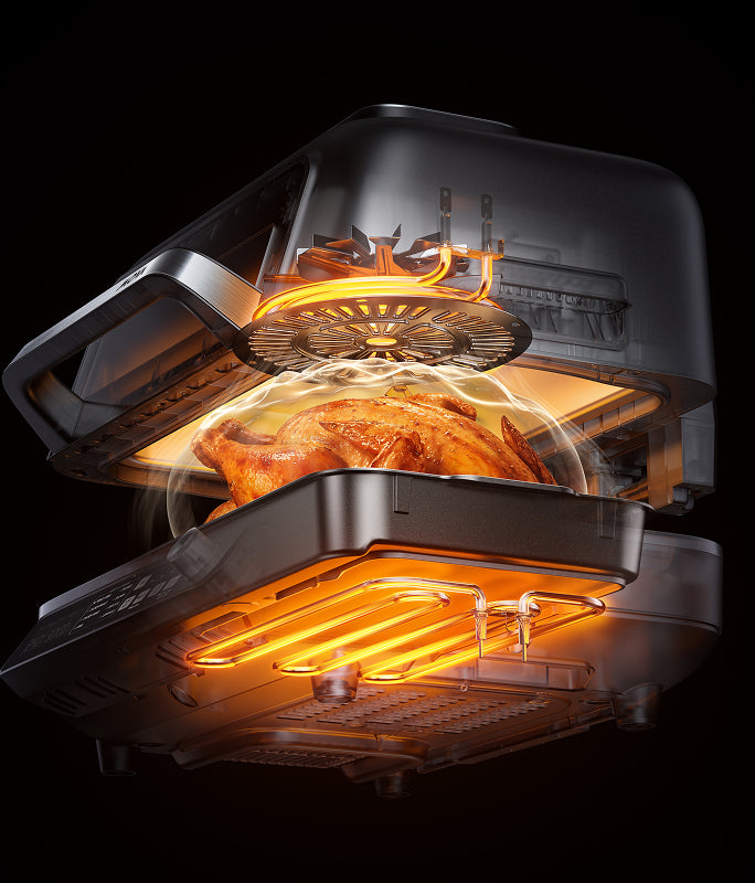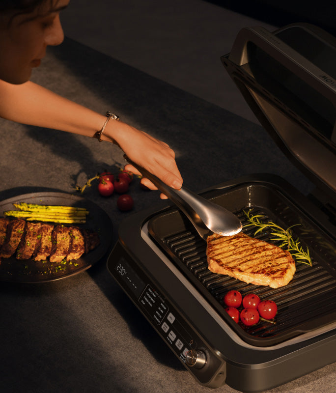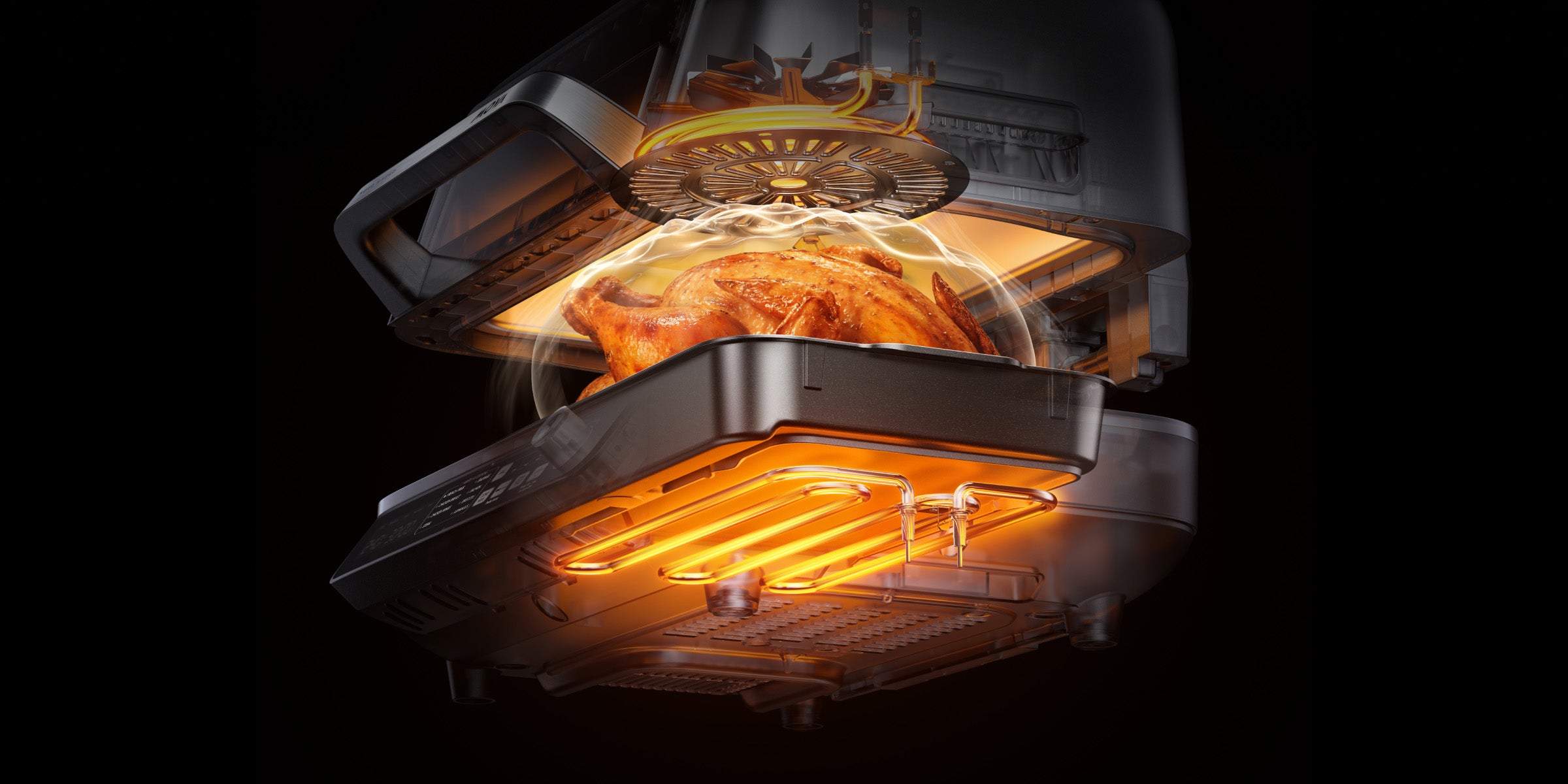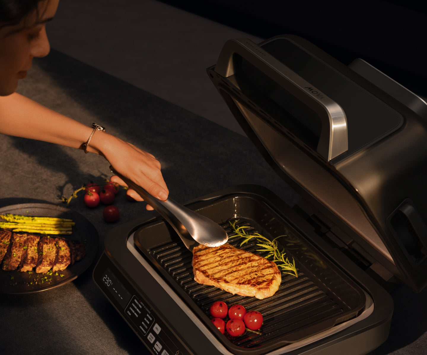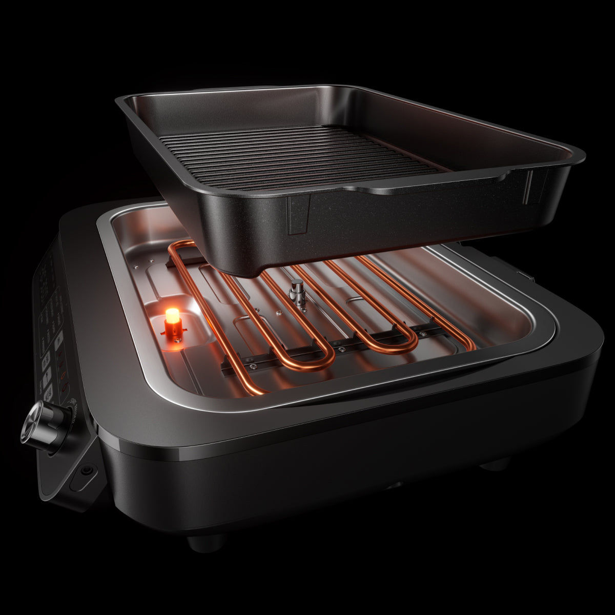 Více než jen vnitřní gril – toto zařízení typu vše v jednom snadno zvládne rozmanité kulinářské úkoly – od grilování, přípravy na plotně a pečení v horkovzdušné troubě až po smažení bez oleje. Přináší všestrannost a pohodlí přímo na vaši kuchyňskou linku.