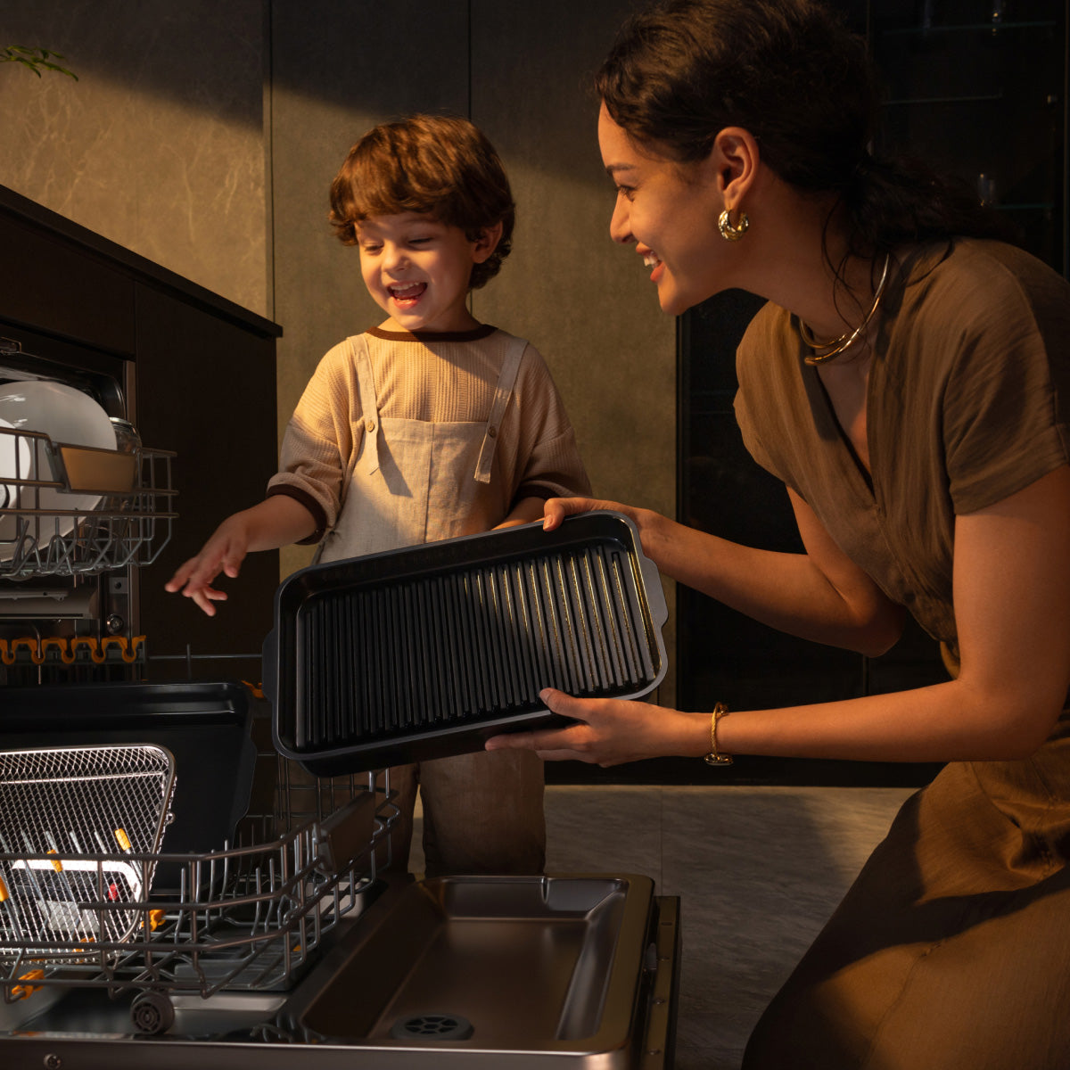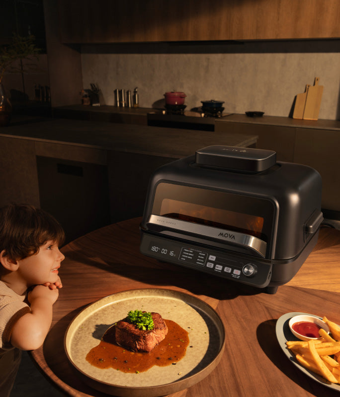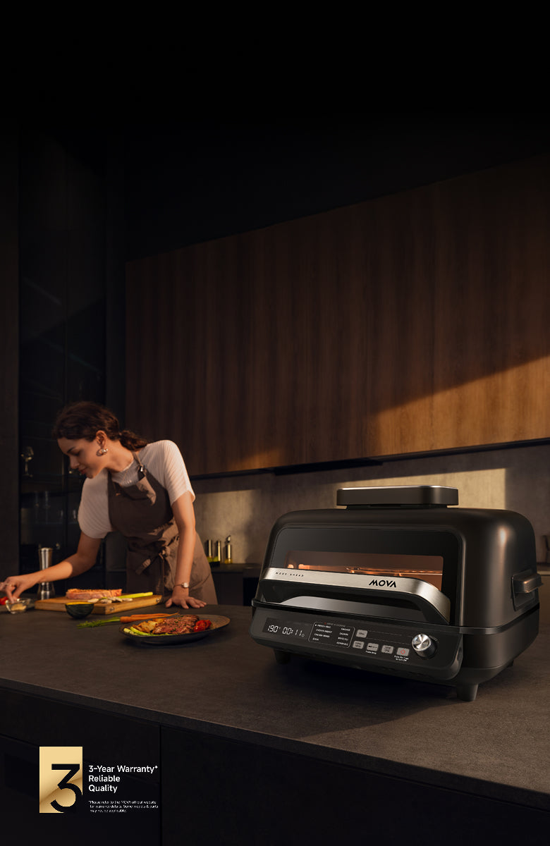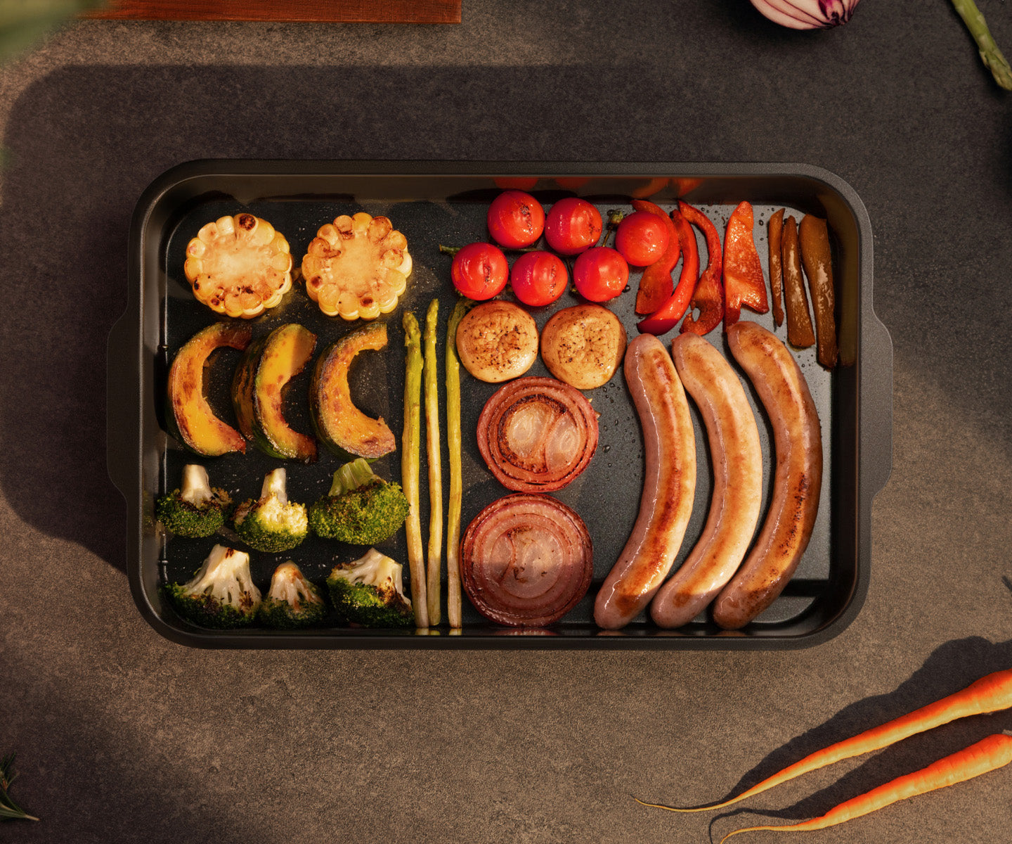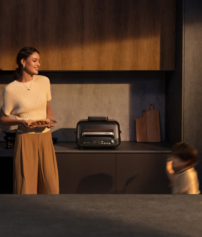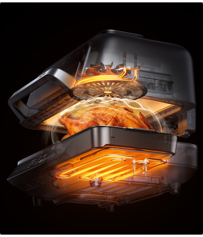 Více než jen vnitřní gril – toto zařízení typu vše v jednom snadno zvládne rozmanité kulinářské úkoly – od grilování, přípravy na plotně a pečení v horkovzdušné troubě až po smažení bez oleje. Přináší všestrannost a pohodlí přímo na vaši kuchyňskou linku.