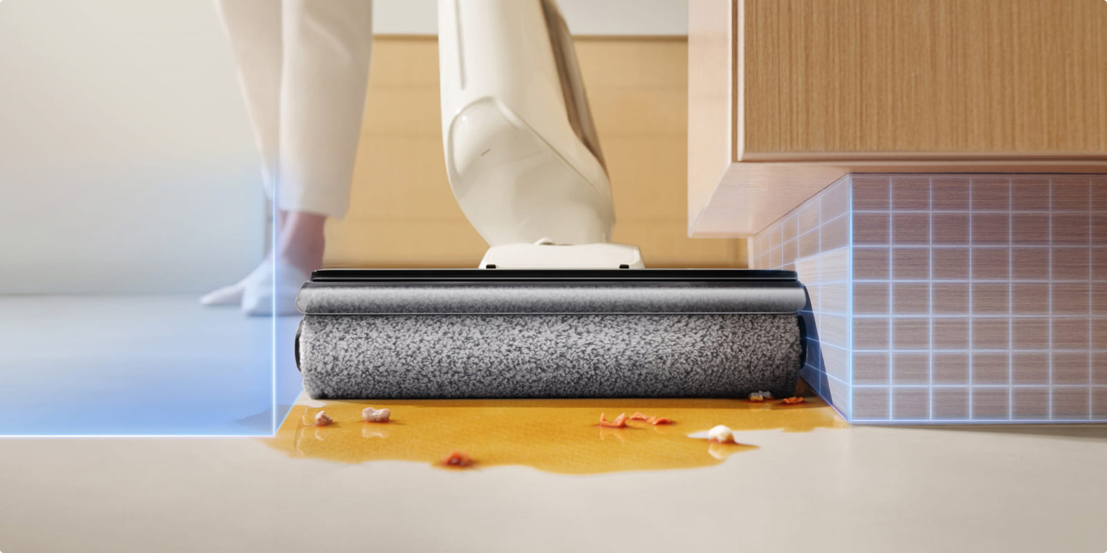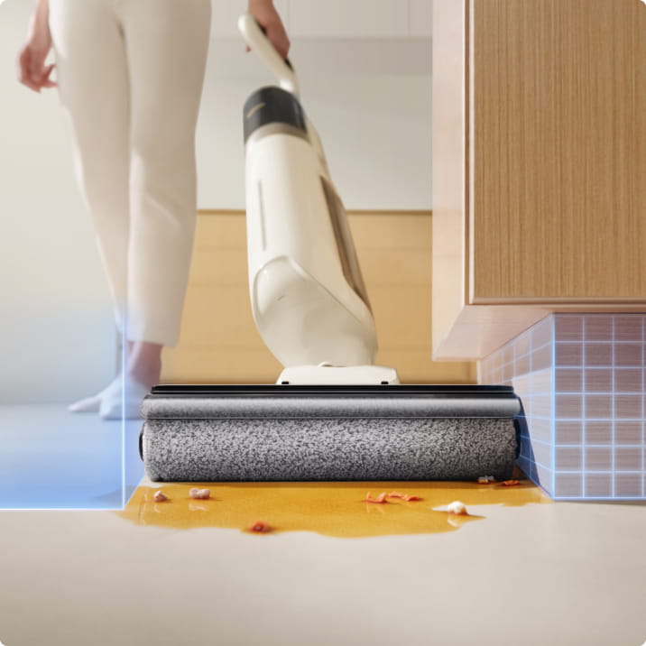 *0 mm: Toto se týká schopnosti odsávání prachu podlahového čističe, který udržuje vzdálenost 0 mm od zdi na levé i pravé straně kartáče. Skutečné použití může být ovlivněno environmentálními faktory. Na základě údajů testovaných společnosti GTT Surface Cleaning & Air Treatment Laboratory, zpráva č.: 0593-24A-01A, 0594-24A-01A.