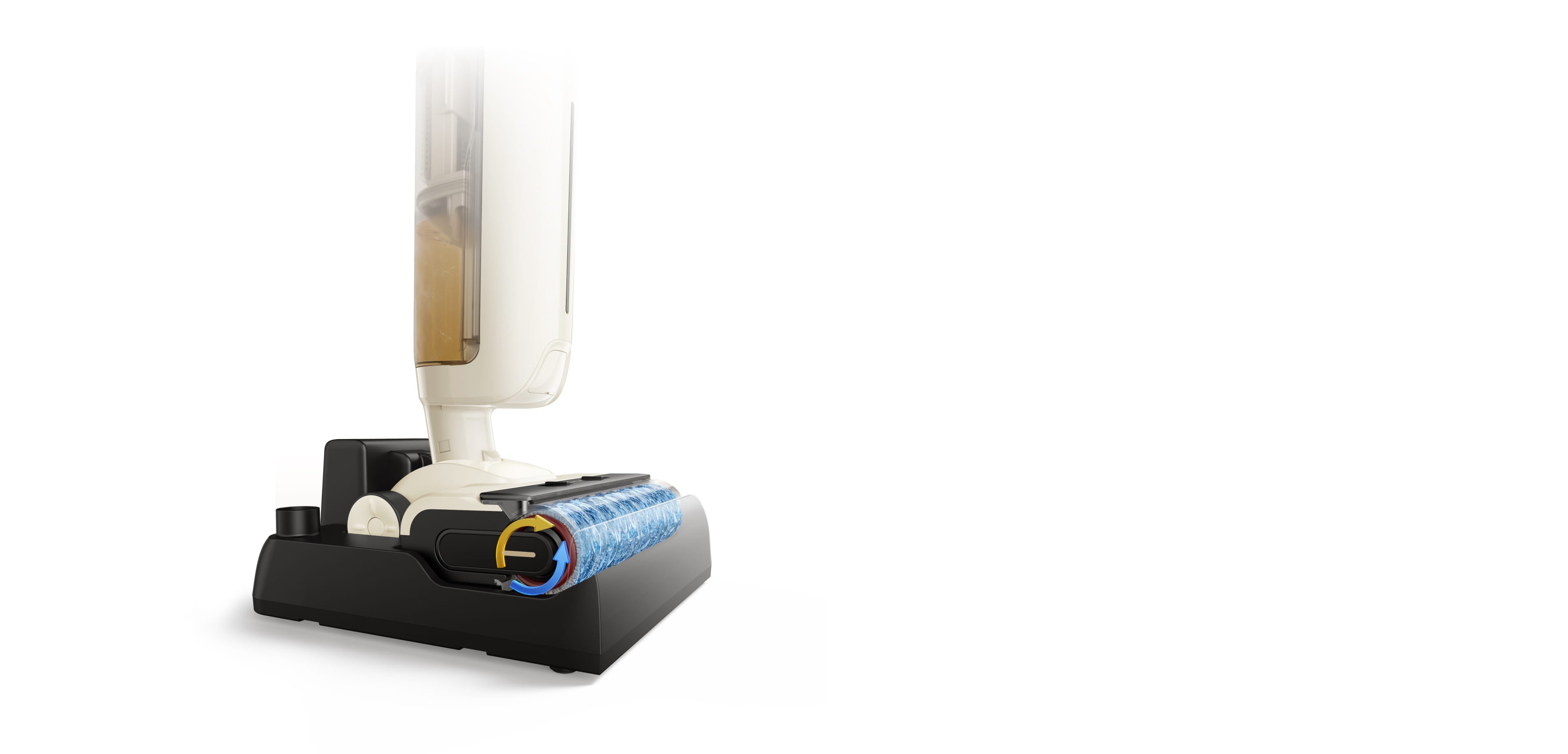 Kartáč stírá špinavou vodu a zároveň poskytuje stálý tok čisté vody, což zajišťuje třpytivou a lesklou podlahu s každým tahem.