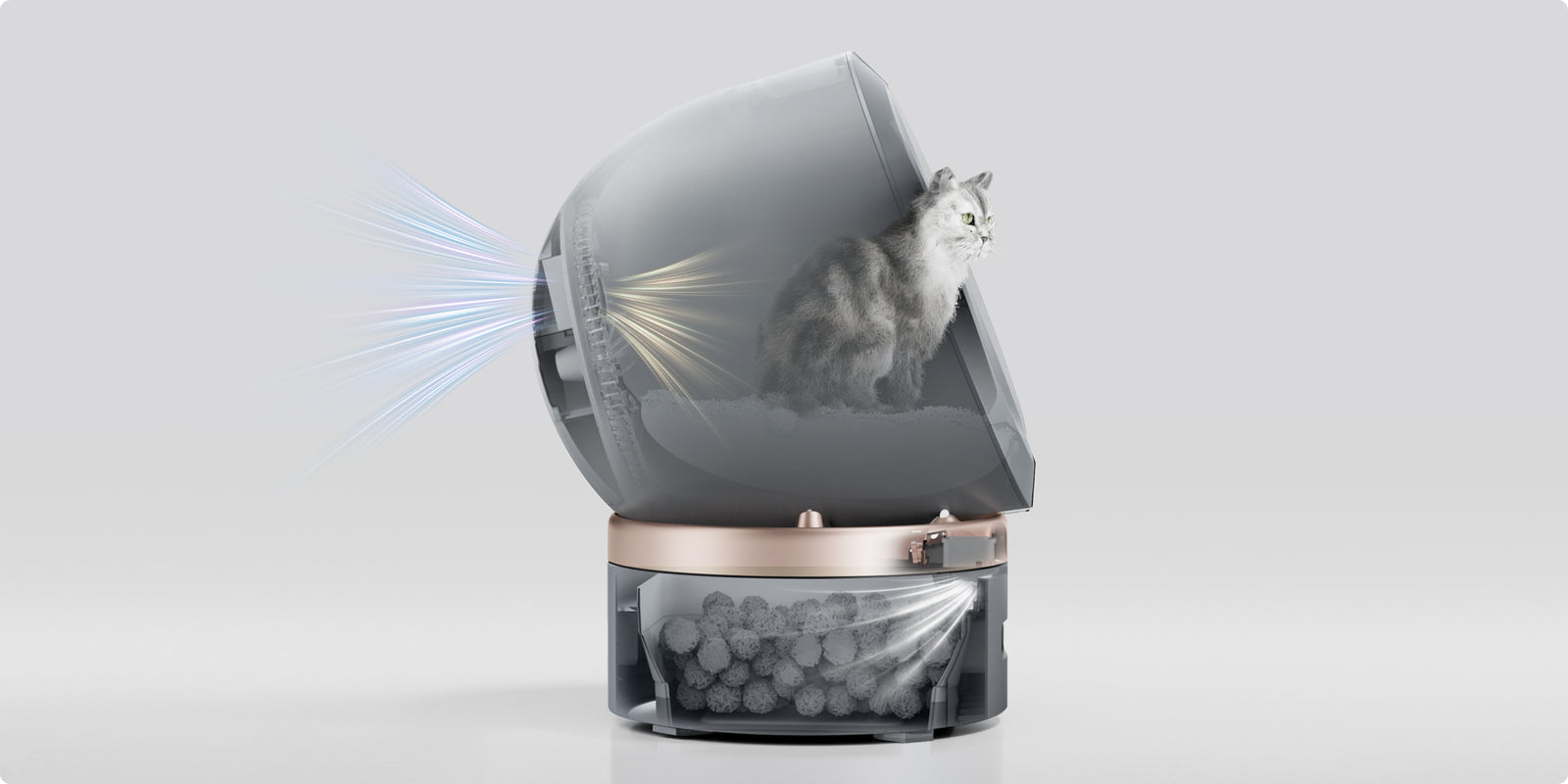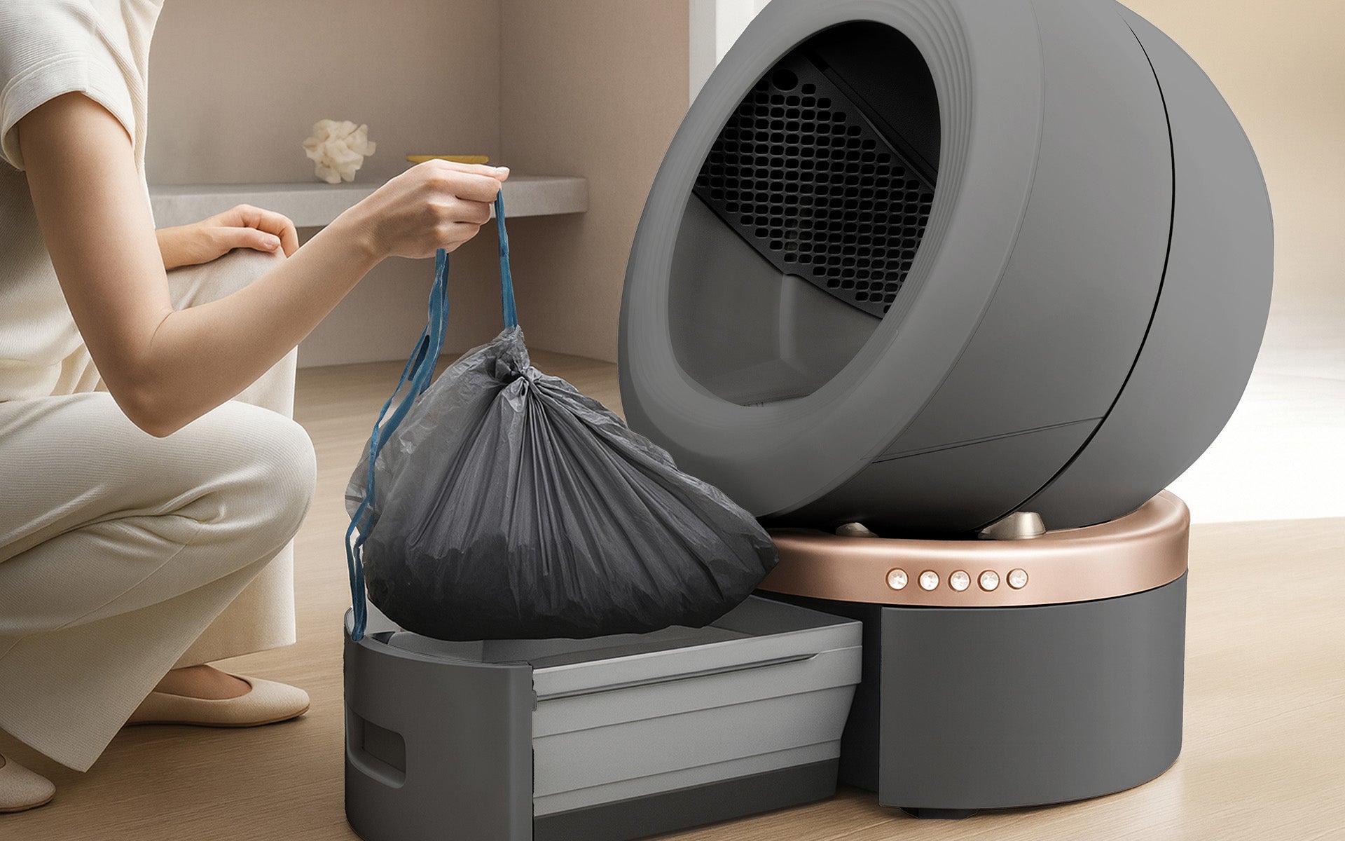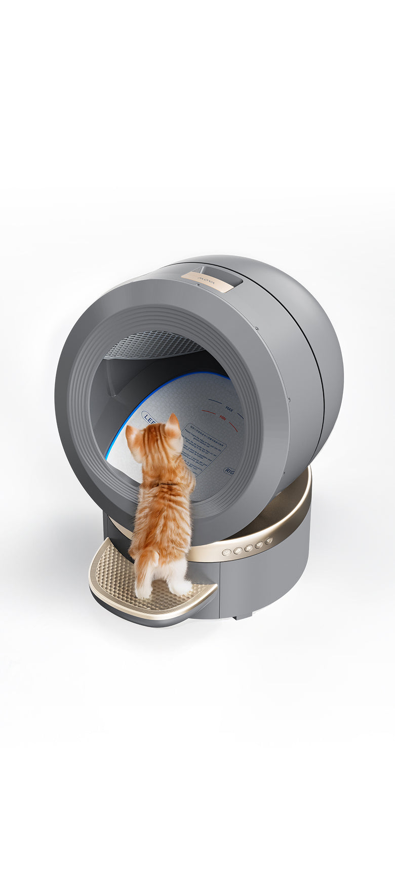 Rukojeť umístěná na vrchu umožňuje snadno vyjmout nádobku. Plastovou nádobu na odpad a podnos na stelivo lze během několika vteřin opláchnout a poté rychle nasadit zpět na místo, aniž byste se museli dotýkat kočičích výkalů.