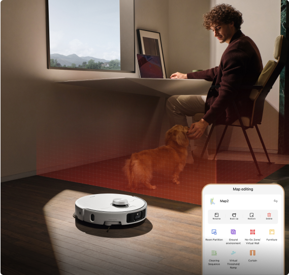 Přizpůsobte si nastavení úklidové aplikace tak, aby co nejlépe vyhovovalo vaší domácnosti. Nastavte zóny se zákazem vstupu, oblasti čištění záclon nebo rozmístění nábytku pro bezproblémové ovládání a prostor bez nepořádku.