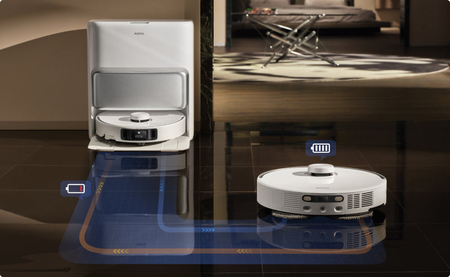 Ponořte se do nepřetržitého čištění s vysavačem P50 Pro Ultra. Jeho 5 200mAh baterie si vhodně poradí s velkými domácími plochami, ať už jde o vysávání koberců nebo stírání lepkavých skvrn. Robotický vysavač se vrací do doku, aby se dobíjel a pokračoval v úklidu, přičemž nabíjení mimo špičku* vám pomůže ušetřit na energiích.