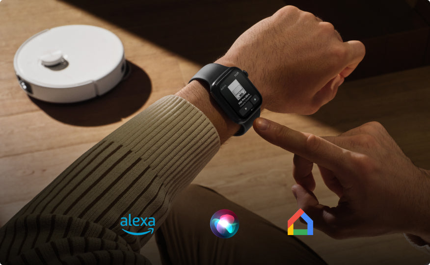 Přístup k čištění, jeho plánování a sledování průběhu můžete slovně ovládat na hodinkách Apple Watch* a dalších zařízeních.
