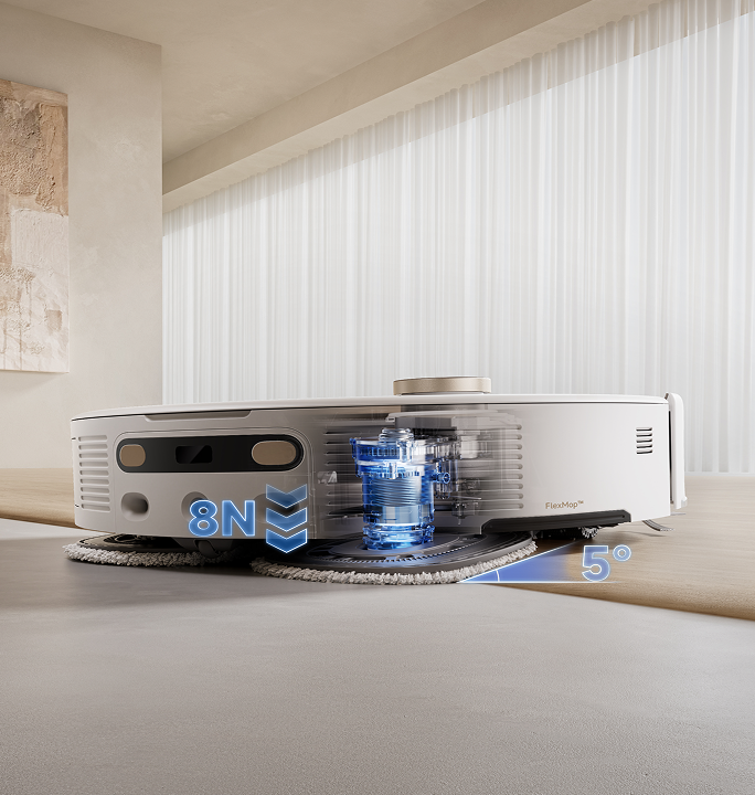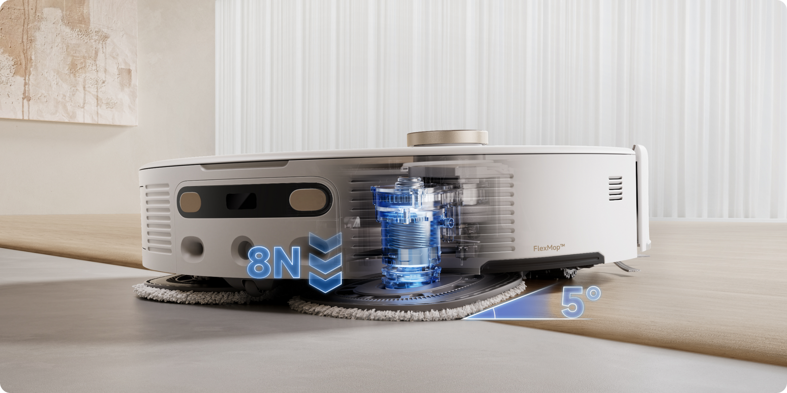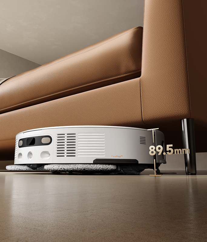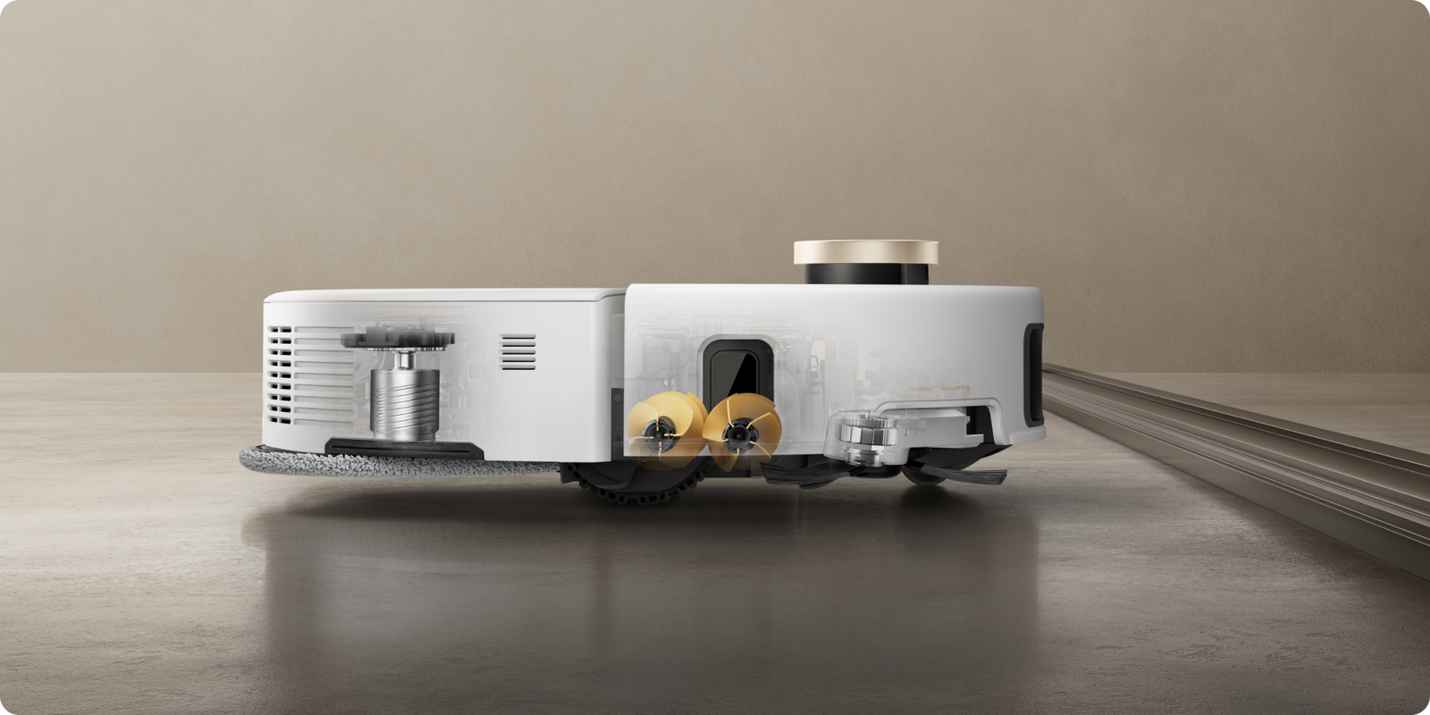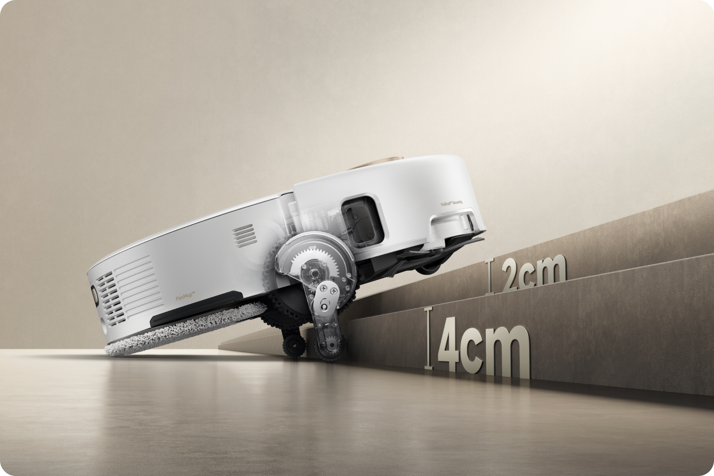 Systém StepMaster™ využívá robotické retrakční nohy, které mohou zvednout šasi, což mu umožňuje snadno překonávat schody, prahy, dveřní dráhy, nohy nábytku tvaru U a malé překážky až do výšky 6 cm*. Snadno naviguje složitým domácím prostředím pro důkladný úklid a bezproblémový návrat.