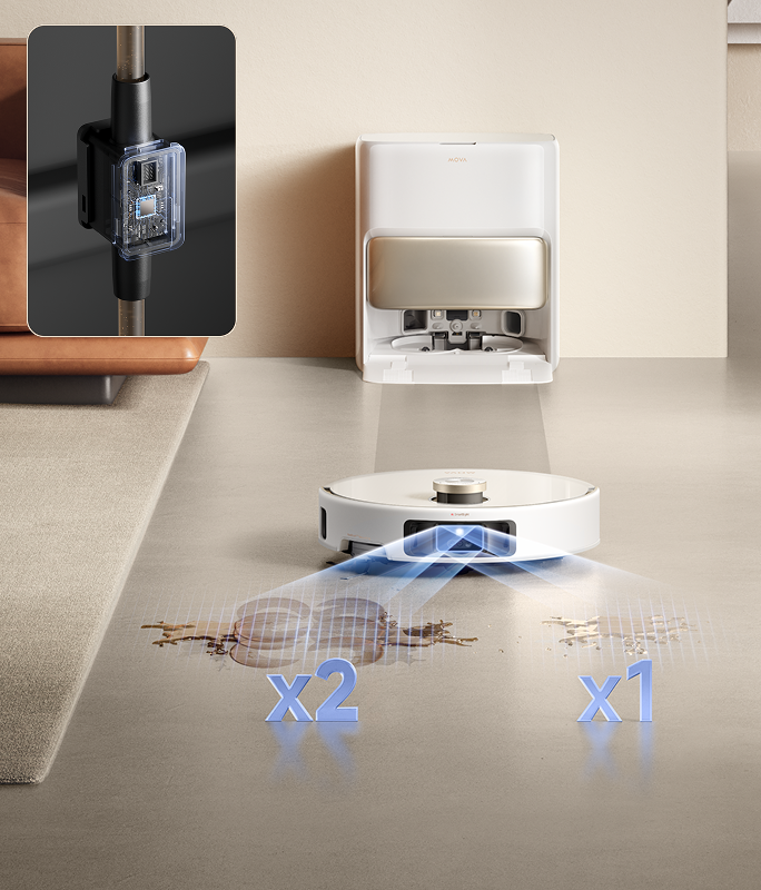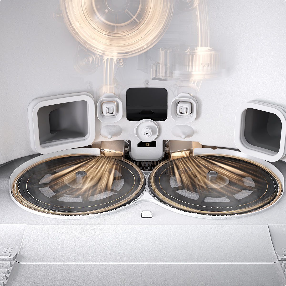 * 260 RPM: Na základě testů v našich interních laboratořích. Skutečný výkon se může lišit v závislosti na použití. Výchozí rychlost mopu je 180 RPM. Když je detekována pevná nebo tekutá špína, automaticky se zvýší na maximální rychlost 260 RPM pro lepší úklid.