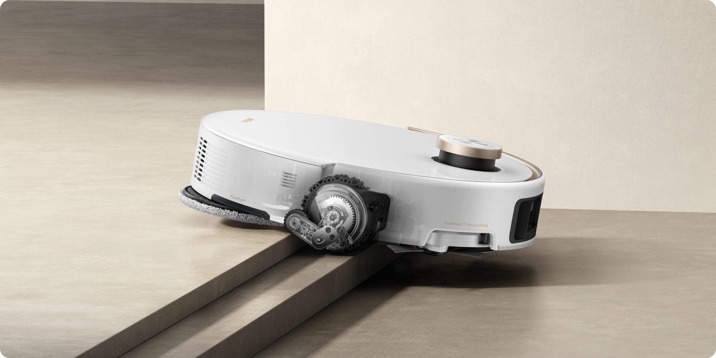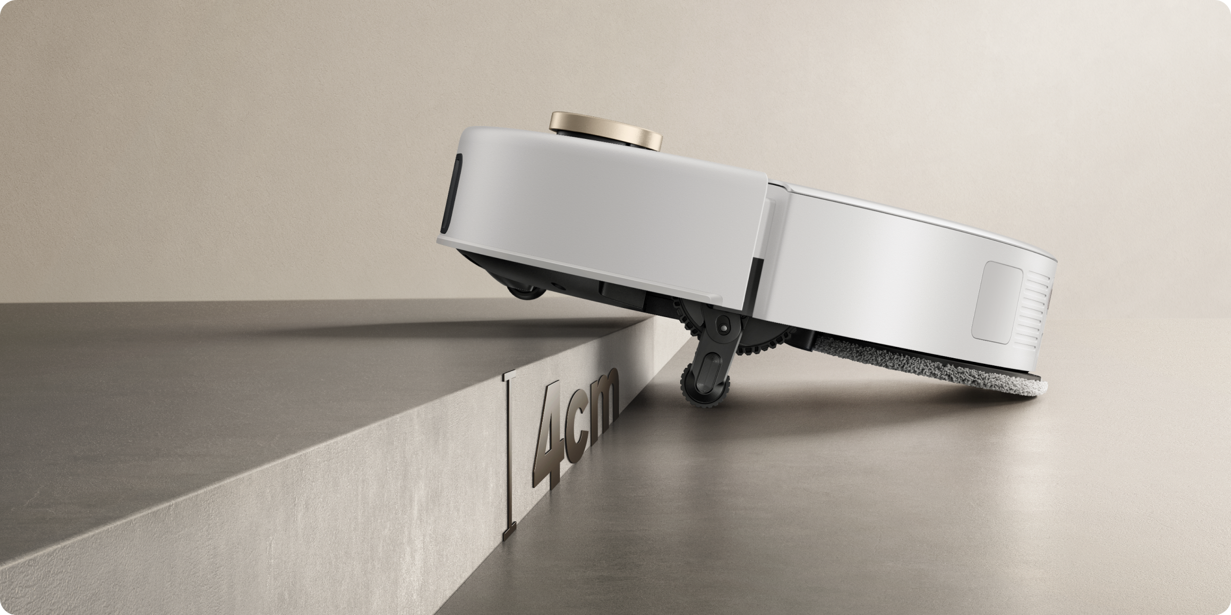 Systém StepMaster™ využívá robotické retrakční nohy, které mohou zvednout šasi, což mu umožňuje snadno překonávat schody, prahy, dveřní dráhy, nohy nábytku tvaru U a malé překážky až do výšky 6 cm*. Snadno naviguje složitým domácím prostředím pro důkladný úklid a bezproblémový návrat.