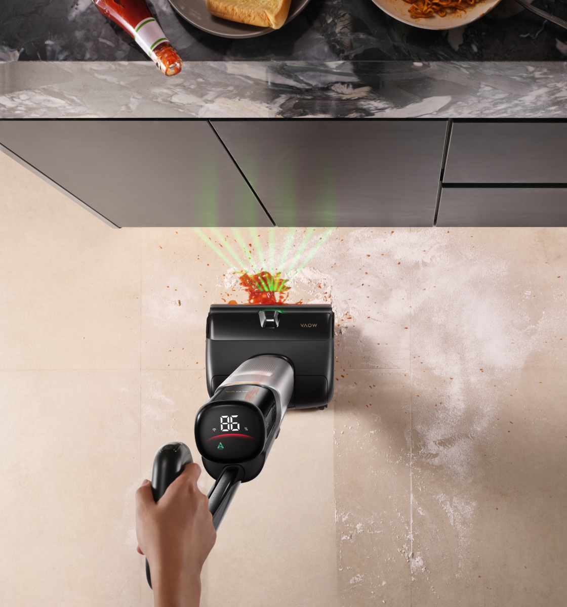 Silný motor poskytuje silné sání, spojené s vysokorychlostním válcovým kartáčem, který dovedně zvládá mokré a suché zbytky.