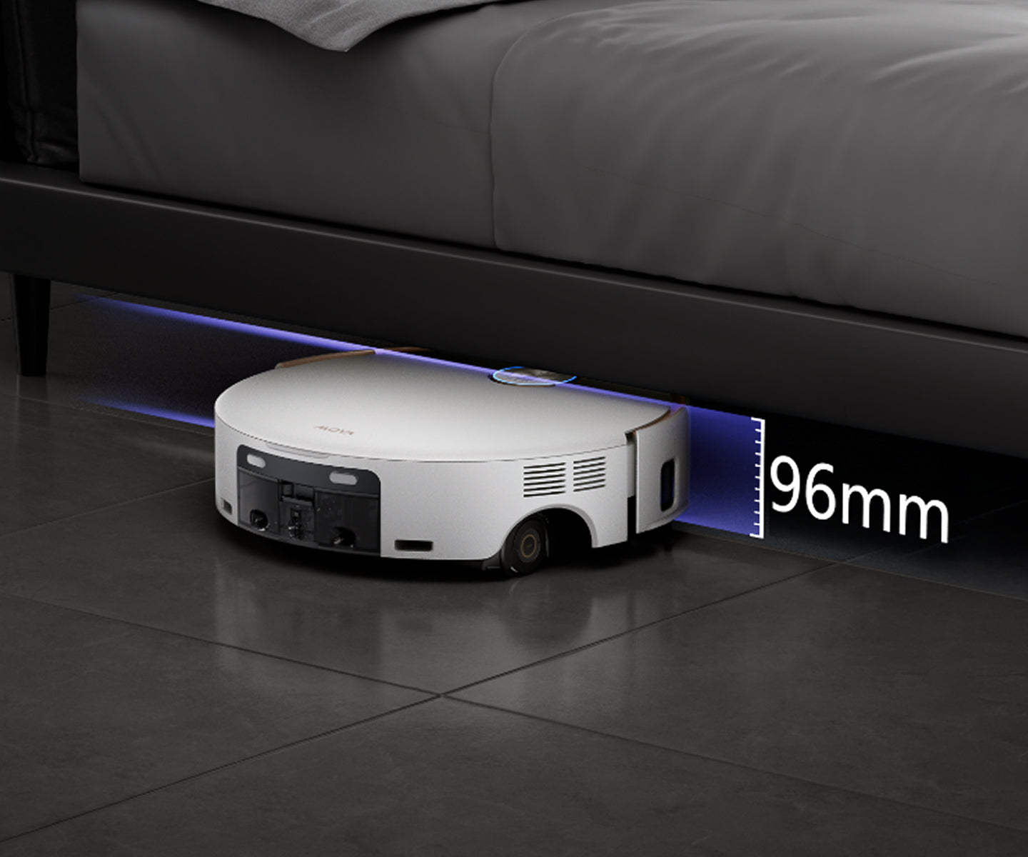 Rozměry robotického vysavače 350 × 350 × 96 mm (se zasunutým senzorem DToF)