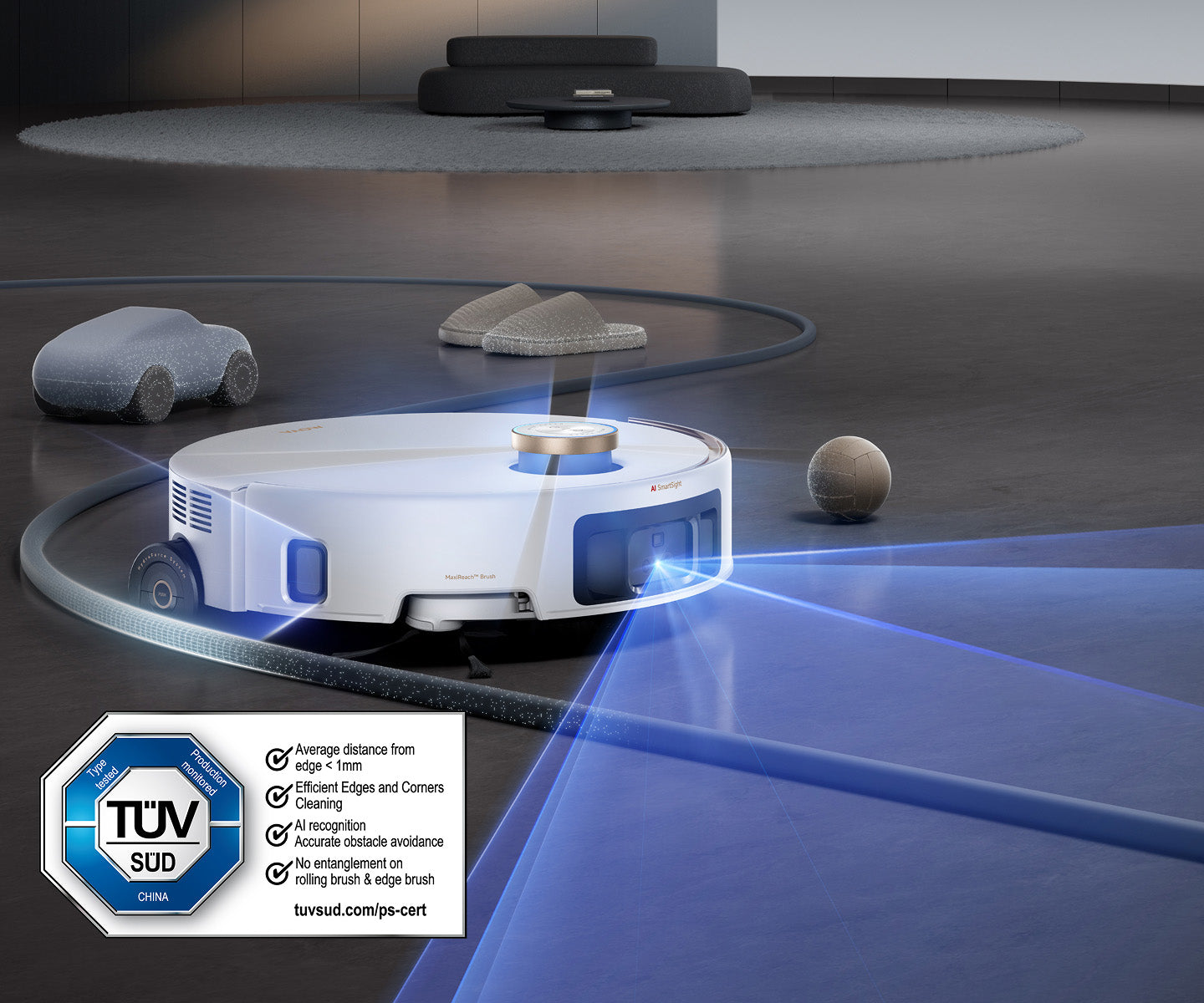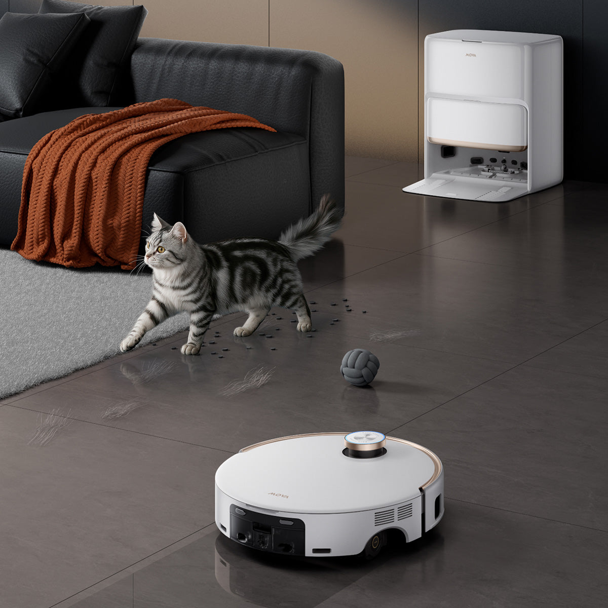 *+ 200 %: Robotický vysavač Z60 Ultra Roller Complete dosahuje 200% zlepšení ve výkonu čištění v porovnání s jinými robotickými modely MOVA se dvěma disky, na základě našich interních laboratorních testů. Skutečné výsledky se mohou lišit v závislosti na okolních faktorech.