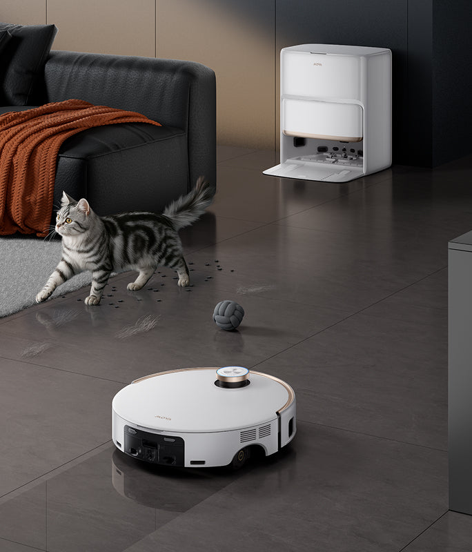 Užijte si pohodlí univerzální základní stanice, která je navržena tak, aby vám zjednodušila úklid díky automatickému doplňování, vyprazdňování, mytí a nabíjení, a pomáhá vám tak provádět skutečně bezdotykovou údržbu.