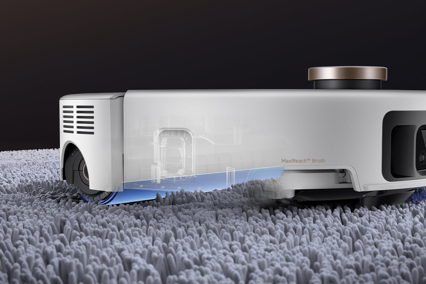 *+ 36 %: Robotický vysavač Z60 Ultra Roller Complete dosahuje 36% zlepšení v kapacitě absorpce půdy v porovnání s jinými robotickými modely MOVA se dvěma disky, na základě našich interních laboratorních testů. Skutečné výsledky se mohou lišit v závislosti na okolních faktorech.