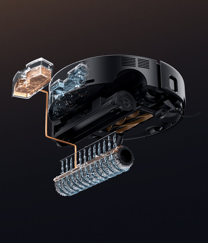 *+ 200 %: Robotický vysavač Z60 Ultra Roller Complete dosahuje 200% zlepšení ve výkonu čištění v porovnání s jinými robotickými modely MOVA se dvěma disky, na základě našich interních laboratorních testů. Skutečné výsledky se mohou lišit v závislosti na okolních faktorech.